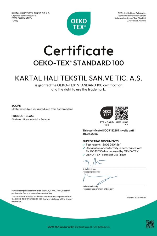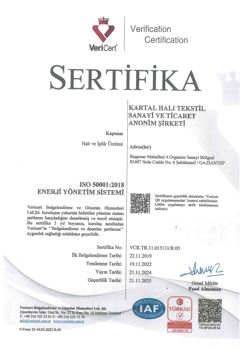 Yaşanılan mekanları estetik, kaliteli ve sağlığa duyarlı halılarla güzelleştiren lider bir firma olarak tüm paydaşları için yüksek ve sürdürülebilir değerler yaratmak.