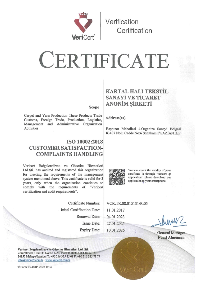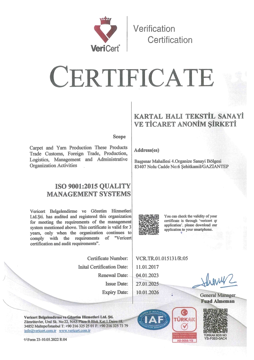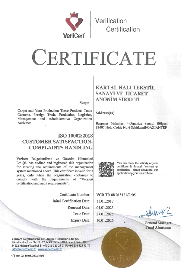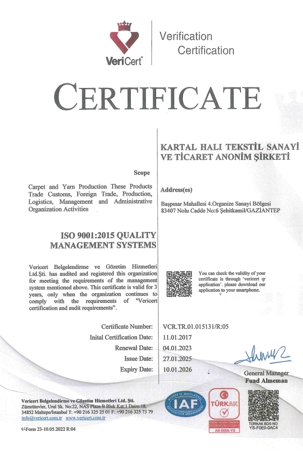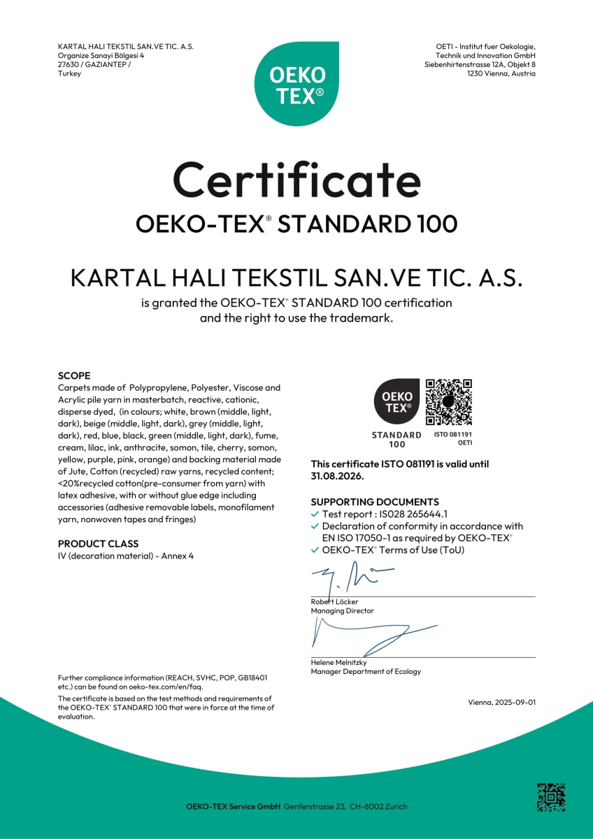 To create high and sustainable values for all its stakeholders as a leading company that beautifies the living spaces with aesthetic, quality and health-sensitive carpets.