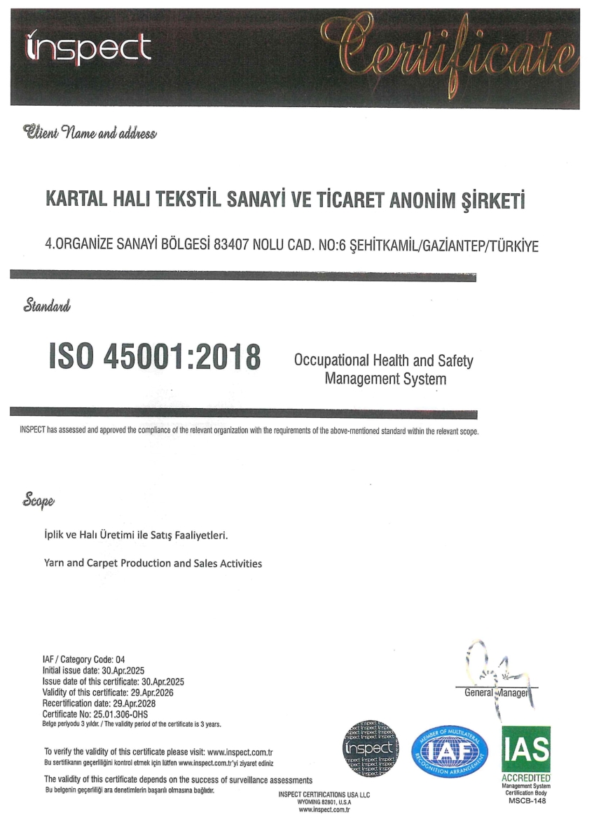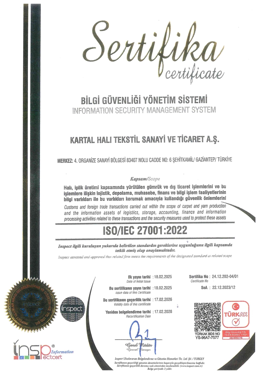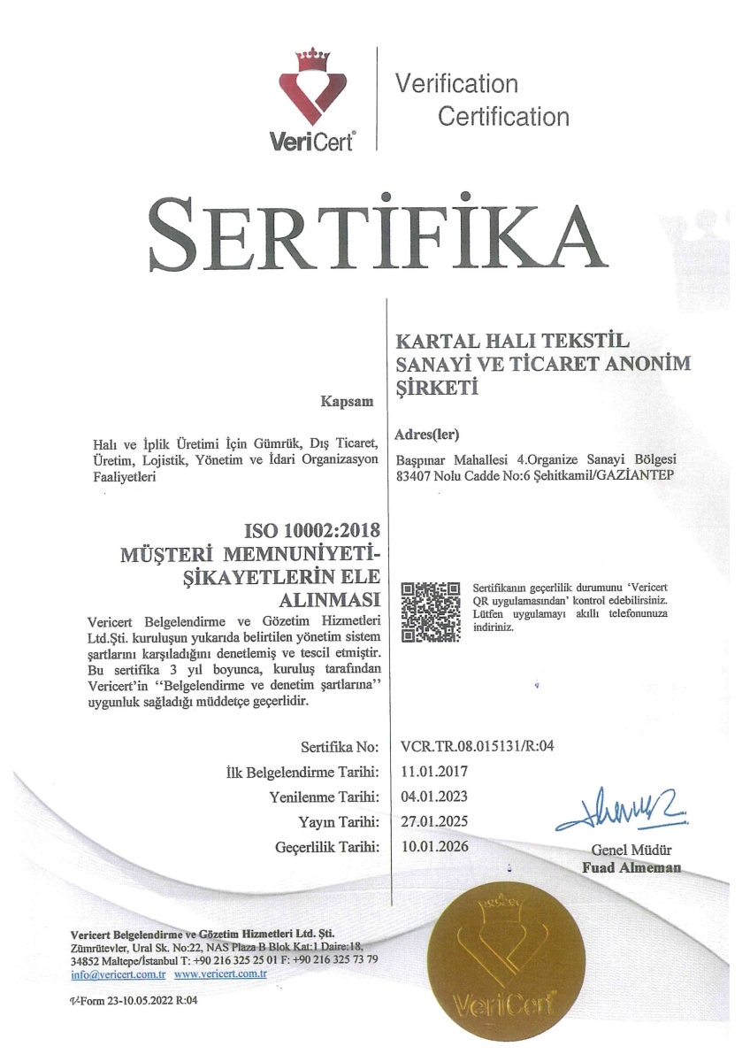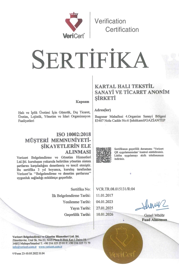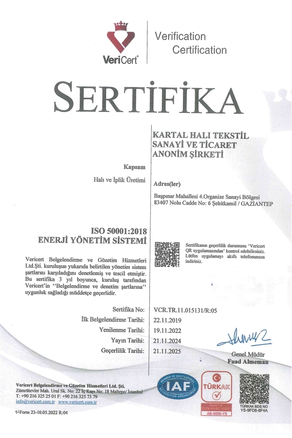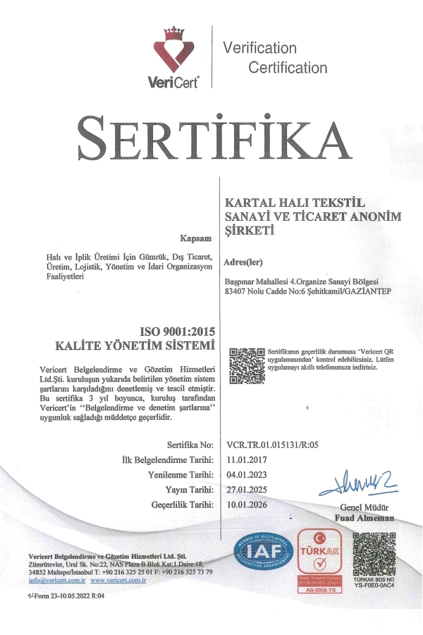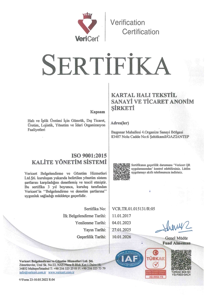 Yaşanılan mekanları estetik, kaliteli ve sağlığa duyarlı halılarla güzelleştiren lider bir firma olarak tüm paydaşları için yüksek ve sürdürülebilir değerler yaratmak.